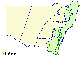 Distribution and occurrence: Grows in margins of temperate or subtropical rainforests or wet or dry sclerophyll communities, below 1300 m alt.