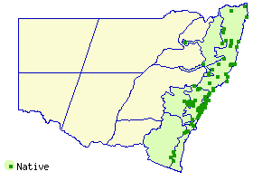 Distribution and occurrence: Widespread on the coast and ranges, west to Mt Kaputar N.P. Grows in wet sclerophyll forest, in or on the margins of sub-tropical, warm and cool-temperate rainforest.