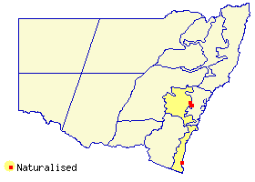 Distribution and occurrence: Naturalised in Central and Southern Tablelands (NSW); Vic. SA & Tas. Native to WA. Garden escape (in eastern Australia and parts of Western Australia), growing in sclerophyll forest and shrublands