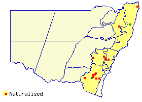 Distribution and occurrence: Widely cultivated, persists in old gardens, probably naturalized in a few disturbed areas; from Armidale to the Araluen-Lake George area. Native of China & Japan.