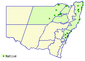 Distribution and occurrence: Grows in open woodland, on sandy soil; scattered on coast north from Sydney region, inland north from Narrabri and Quambone.
