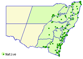 Distribution and occurrence: Grows in swampy areas and on stream banks; widespread on coast, tablelands and western slopes, west to Pilliga Scrub and Warrumbungle Ra.