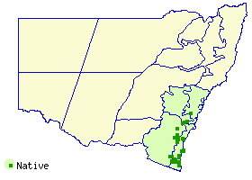 Distribution and occurrence: Locally frequent, in wet forest on fertile soils in valleys in subcoastal ranges; south from the Shoalhaven R. (Wingello).