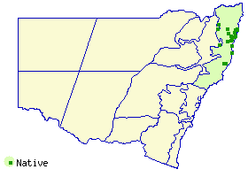Distribution and occurrence: Restricted but locally frequent, in wet sclerophyll or grassy coastal forest on lighter soils on sloping country; from Washpool to Wauchope.