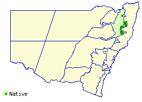 Distribution and occurrence: Restricted to steep upper slopes of gorges in the upper Macleay and Guy Fawkes Rivers.