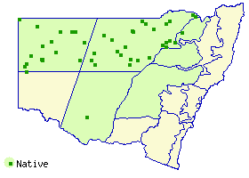 Distribution and occurrence: Grows in woodland, shrubland or Triodia communities, on red sand (sometimes on dunes) or black soils or clays; west from Dubbo and Terry Hie Hie.