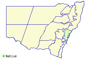 Distribution and occurrence: Restricted to the lower reaches of the Woronora River on Central Coast of NSW. Growing on rocky sandstone slopes in sclerophyll forest.