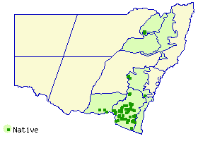 Distribution and occurrence: Chiefly at higher altitudes south from Wingello, also at Mt Kaputar N.P. and Mt Conobolas. Grows in dry sclerophyll forest.